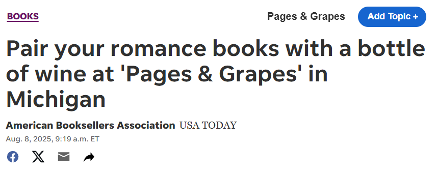 At Pages & Grapes, our mission is to cultivate a community of romantic readers who can connect and discover their next great read in a judgment-free environment. We are dedicated to providing exceptional customer experiences, fostering meaningful relationships, and supporting local businesses and products.